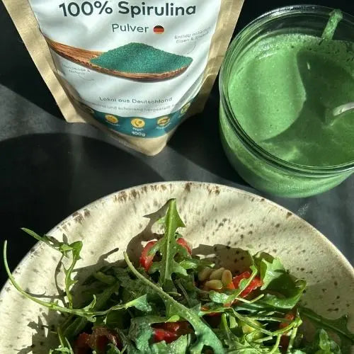 Knackiges Gemüse, süße Mango und geröstete Pinienkerne – dieser Salat ist nicht nur ein echter Hingucker, sondern auch geschmacklich ein Volltreffer. Das grüne Superfood-Dressing bringt Würze und Power auf den Teller! 🌿✨