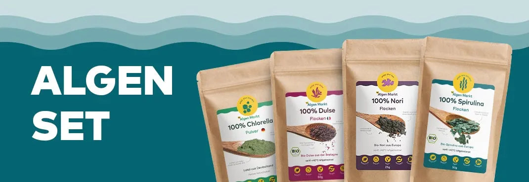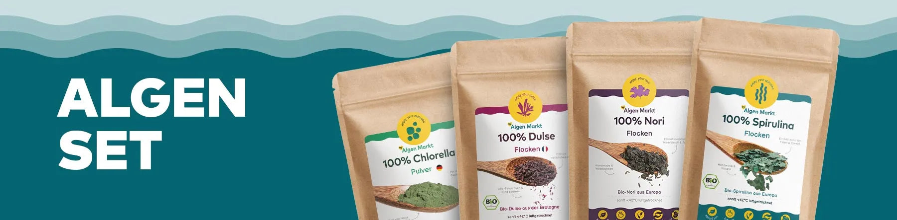 Entdecke jetzt unsere Algen-Sets im Vorteilspaket – ideal zum Probieren, Verschenken oder für den täglichen Einsatz in Smoothies, Müslis, Suppen und mehr.