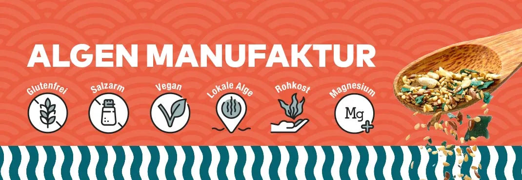 Unsere Algen Manufaktur steht für innovative Feinkost in Bio-Qualität. Gemeinsam mit Partner-Manufakturen entwickeln wir Produkte, die Gesundheit und Genuss miteinander verbinden.