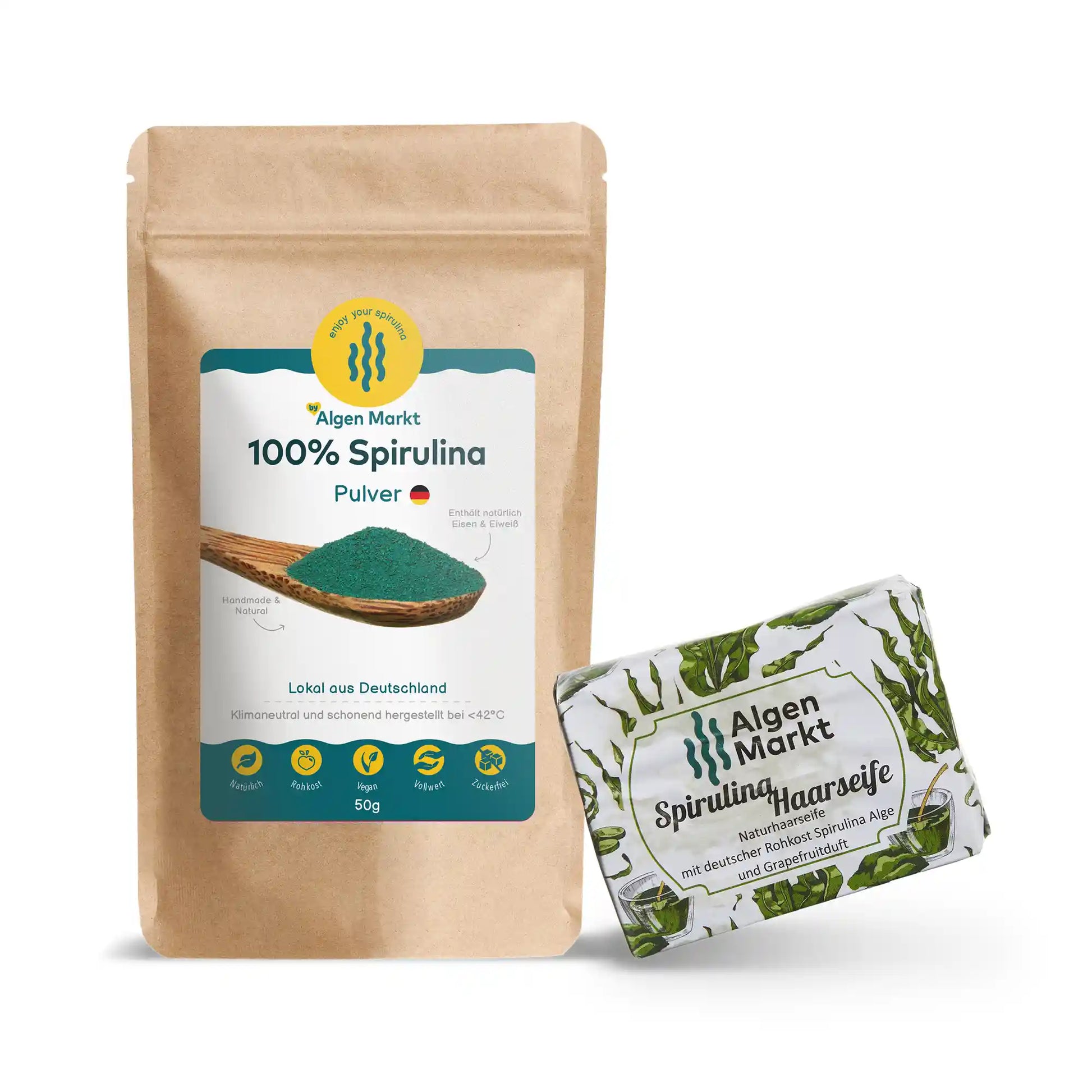 Spirulina Haarpflege Set: Spirulina Pulver + Haarseife