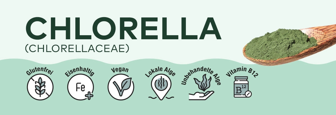 Die Chlorella-Alge ist eine einzellige Süßwasseralge, die weltweit vorkommt und für ihre hohe Nährstoffdichte bekannt ist. Sie gilt als Superfood, da sie reich an Vitamin B12, Chlorophyll, Ballaststoffen sowie Mineralien wie Eisen und Magnesium ist.
