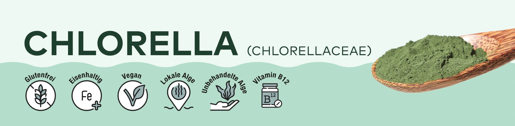 Chlorella ist eine grüne Mikroalge mit rundlicher Zellform. Sie enthält wertvolle Vitalstoffe wie Chlorophyll, Carotinoide und bioverfügbares Vitamin B12 – ein wichtiger Nährstoff besonders für Veganer:innen.