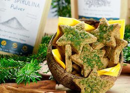 Wie wäre es mit grünen Weihnachtsplätzchen dieses Jahr? Für eine nährstoffreiche Leckerei in der Weihnachtszeit haben wir ein Plätzchen-Rezept mit Spirulina für euch. Mit den veganen Gewürzkeksen tut ihr nicht nur eurem Gaumen, sondern auch eurem Körper etwas Gutes.